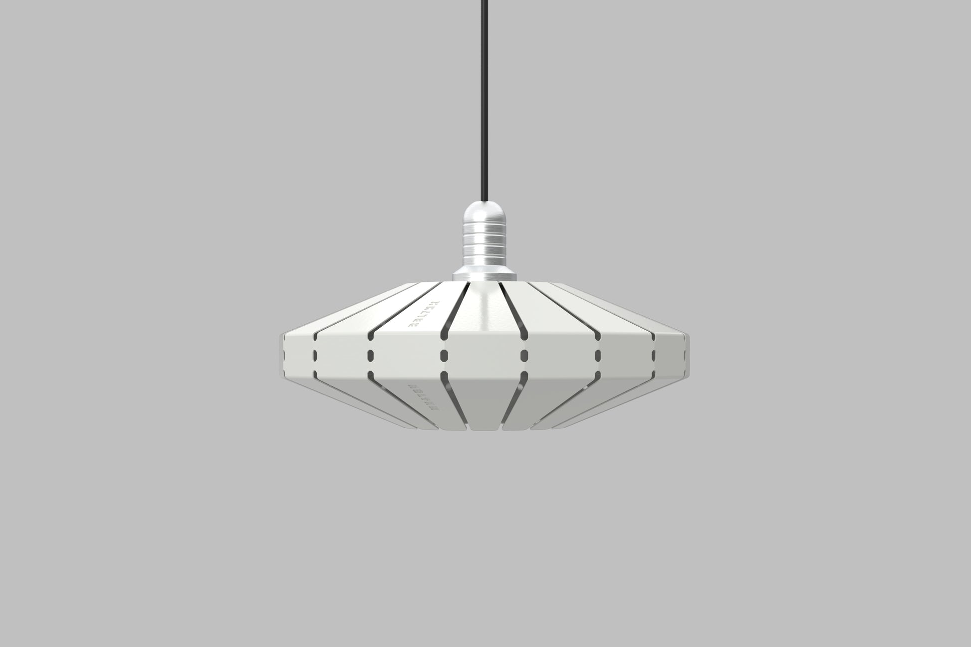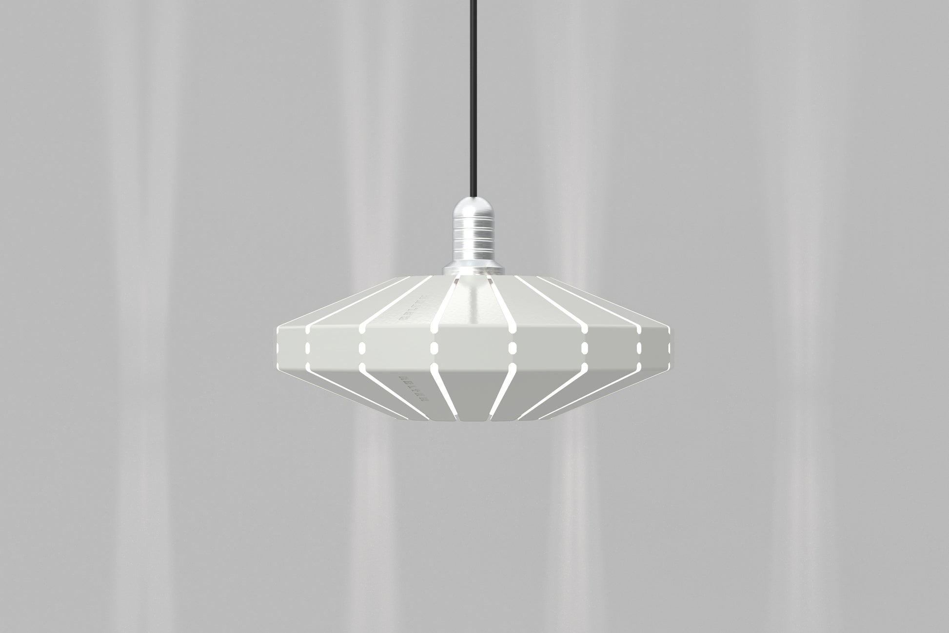 By day, the minimalist, retro-futuristic form of the U.A.P makes a bold statement as a sculptural piece. But as evening falls the lamp undergoes a stunning metamorphosis. Its solid exterior gives way to an illuminated core, revealing a rhythmic pattern of linear spaces that accentuate its unique, UFO-inspired silhouette. These meticulously crafted openings orchestrate a phenomenal interplay of light and shadow, turning any room into a dynamic, atmospheric space.